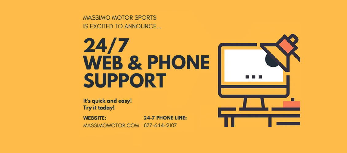 With our 24-7 web chat, if you have a question just type into the live chat box and one of our friendly team members will reply to you live. It’s simple and easy to do. Just go to our website www.massimomotor.com and look on the bottom right hand side. Simply click on the prompt and type in your questions. When we have your question we’ll reply with an answer.