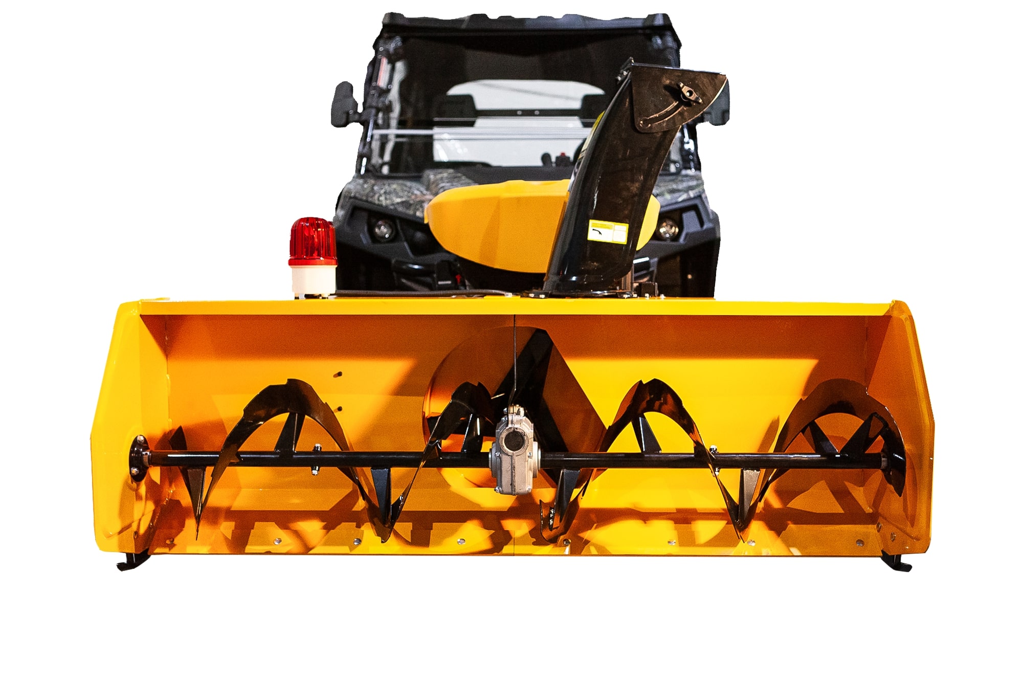 60-inch wide clearing path with a 20-inch intake height, 420cc gas powered engine with 13 HP. Electric start with recoil start for your easy starting. Easy to attach and remove from your UTV or ATV. Mounting plate is included.